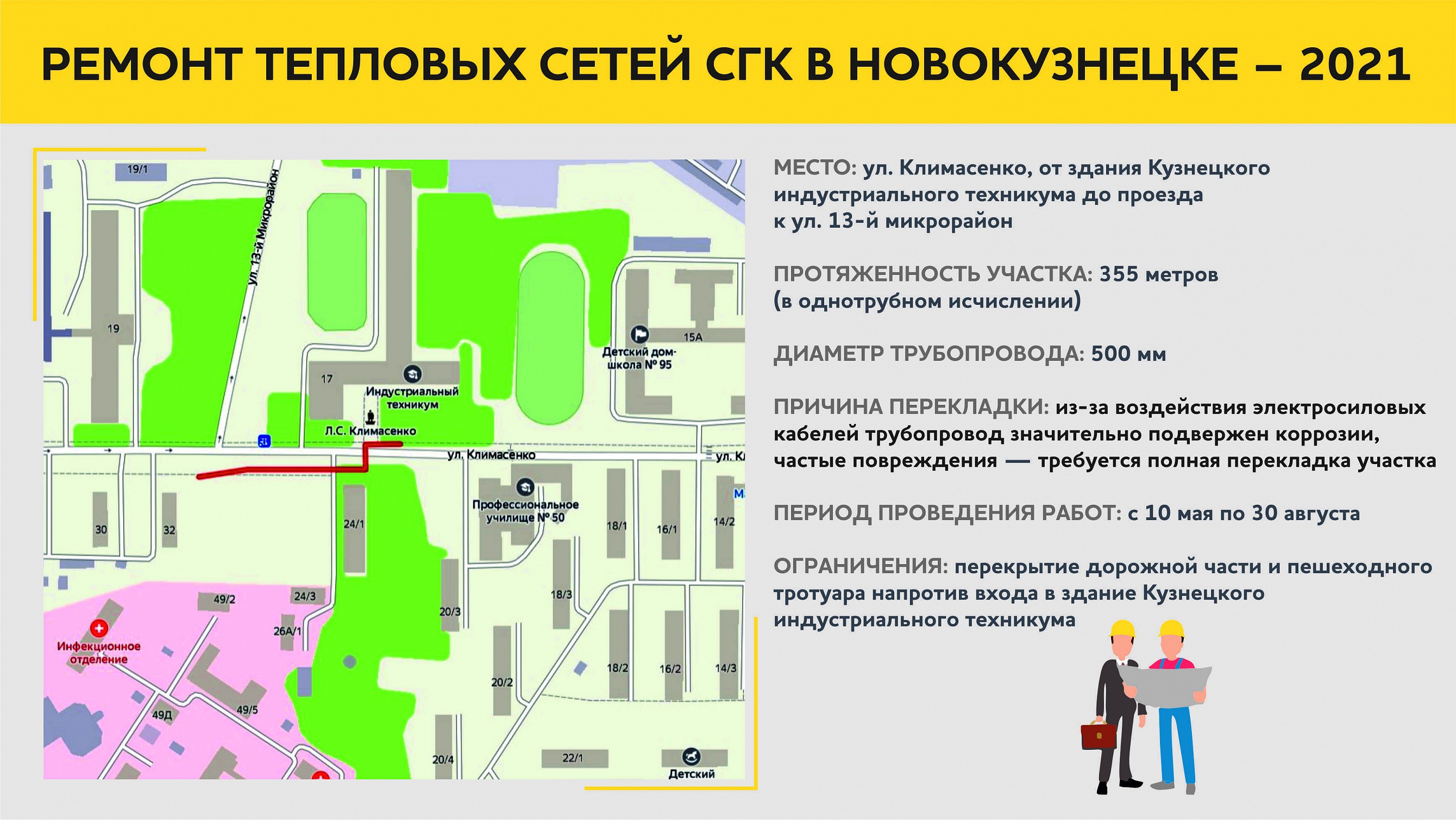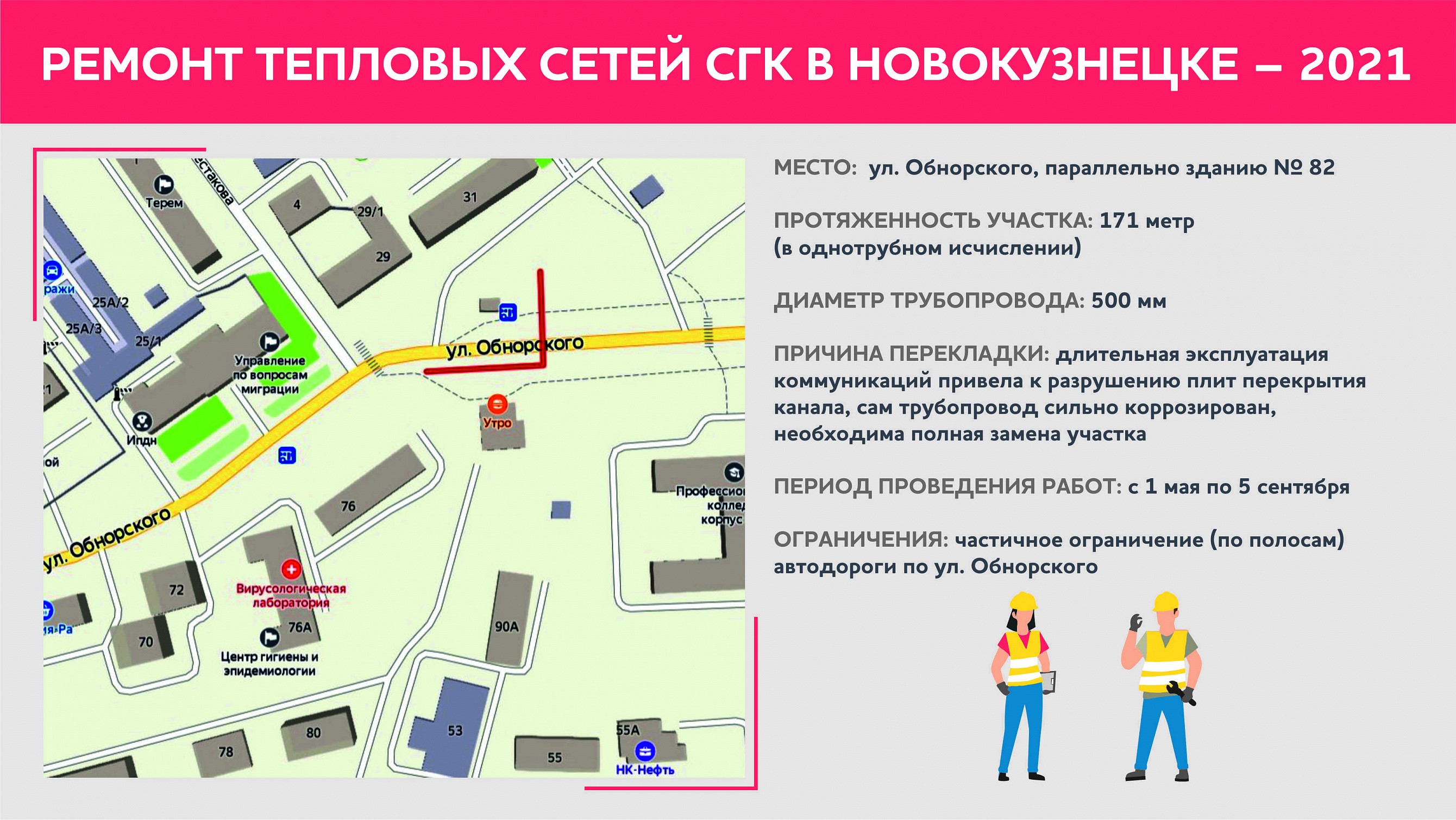 В Кузнецком районе СГК будет перекладывать два участка теплосетей. Один — на улице Обнорского.