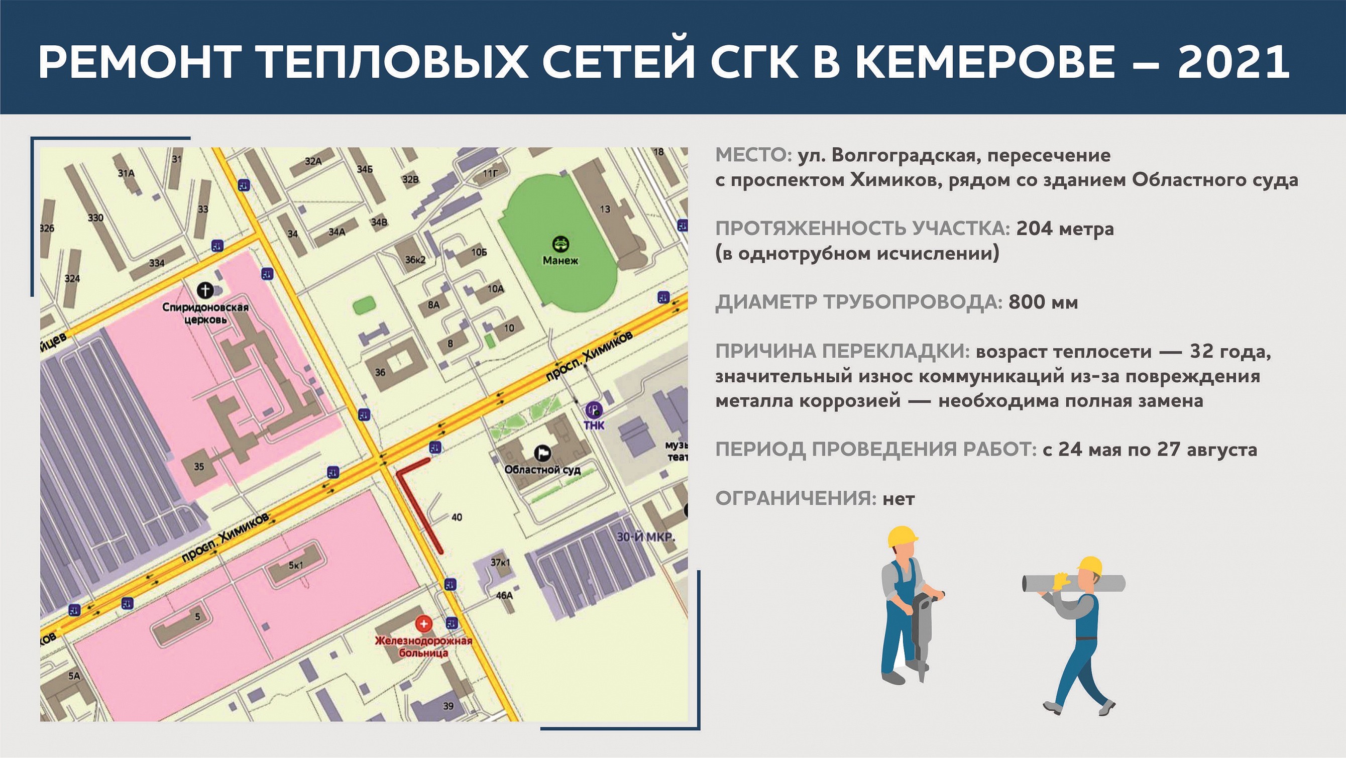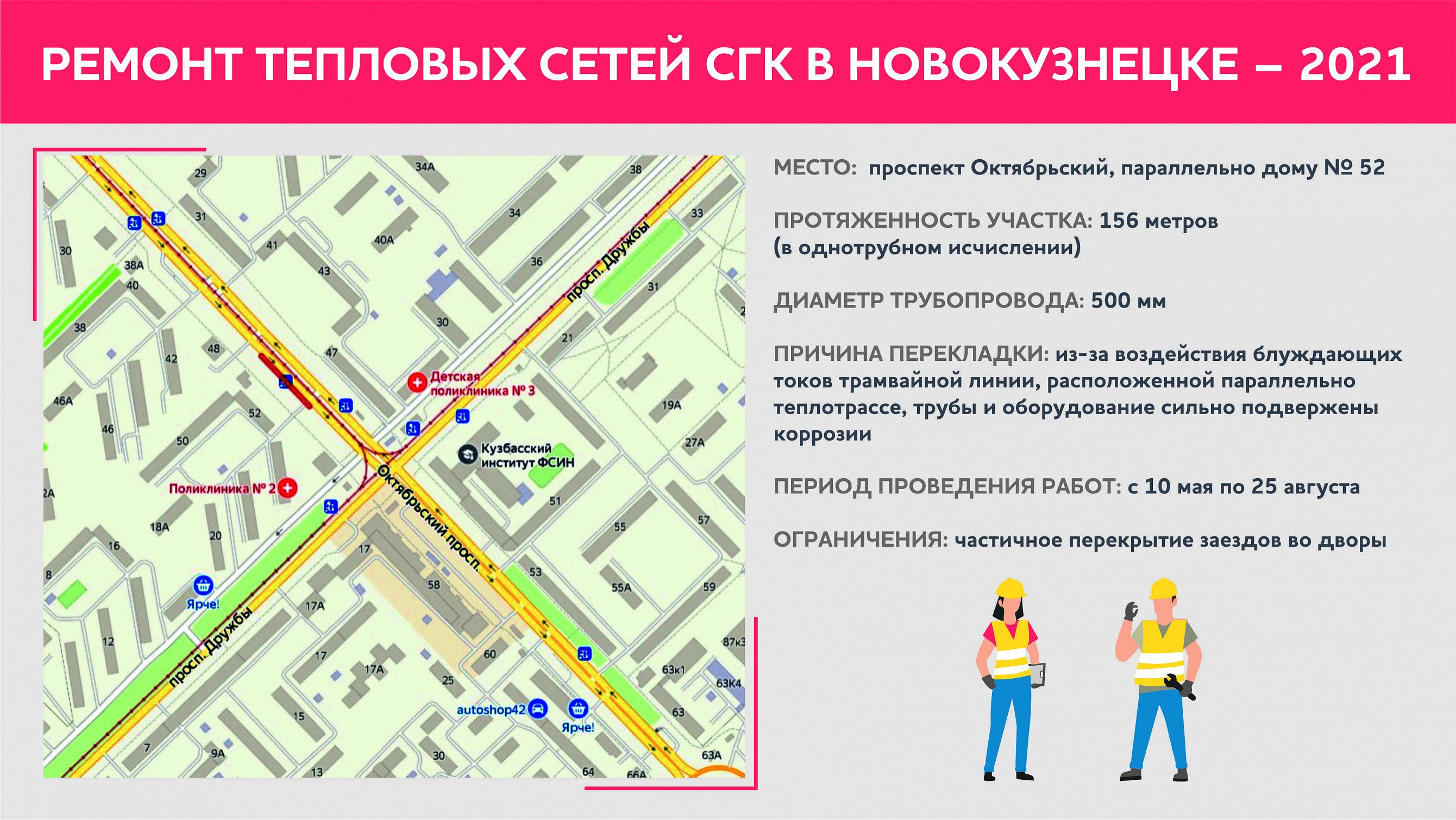На проспекте Октябрьском СГК продолжит поступательную замену ветхих участков теплосетей, которую ведет с 2019 года.