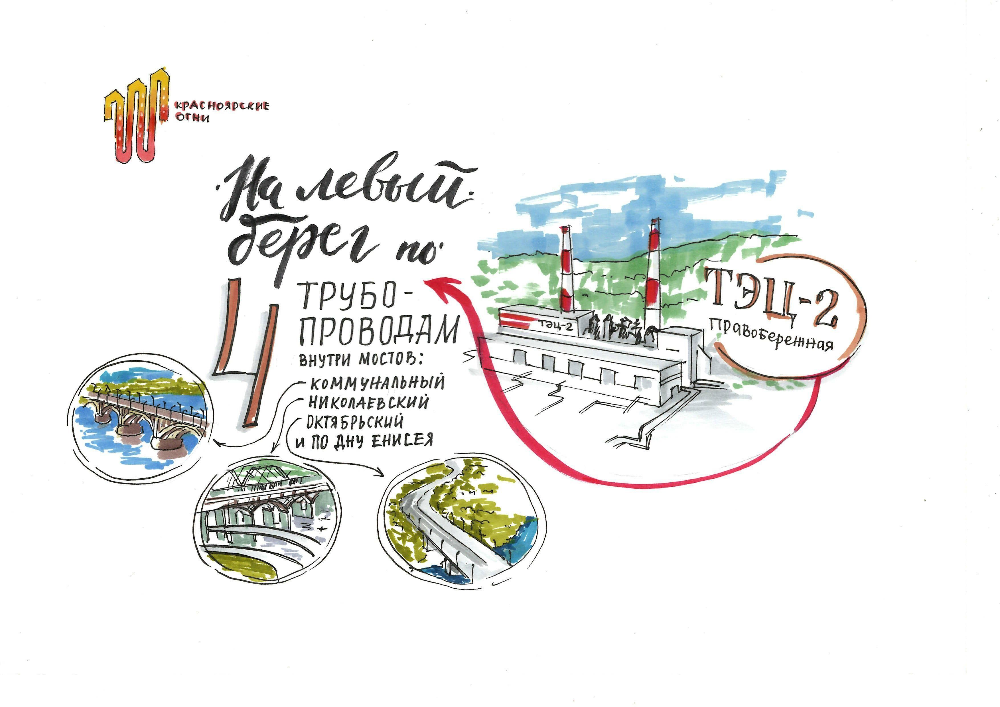 Удивление вызвал у участников экскурсии тот факт, что красноярские мосты — тоже объекты энергетики. В каждом из них «зашит» трубопровод, по которому тепло бежит с одного берега на другой. Кстати, и название Коммунальный мост получил когда-то по этой причине.