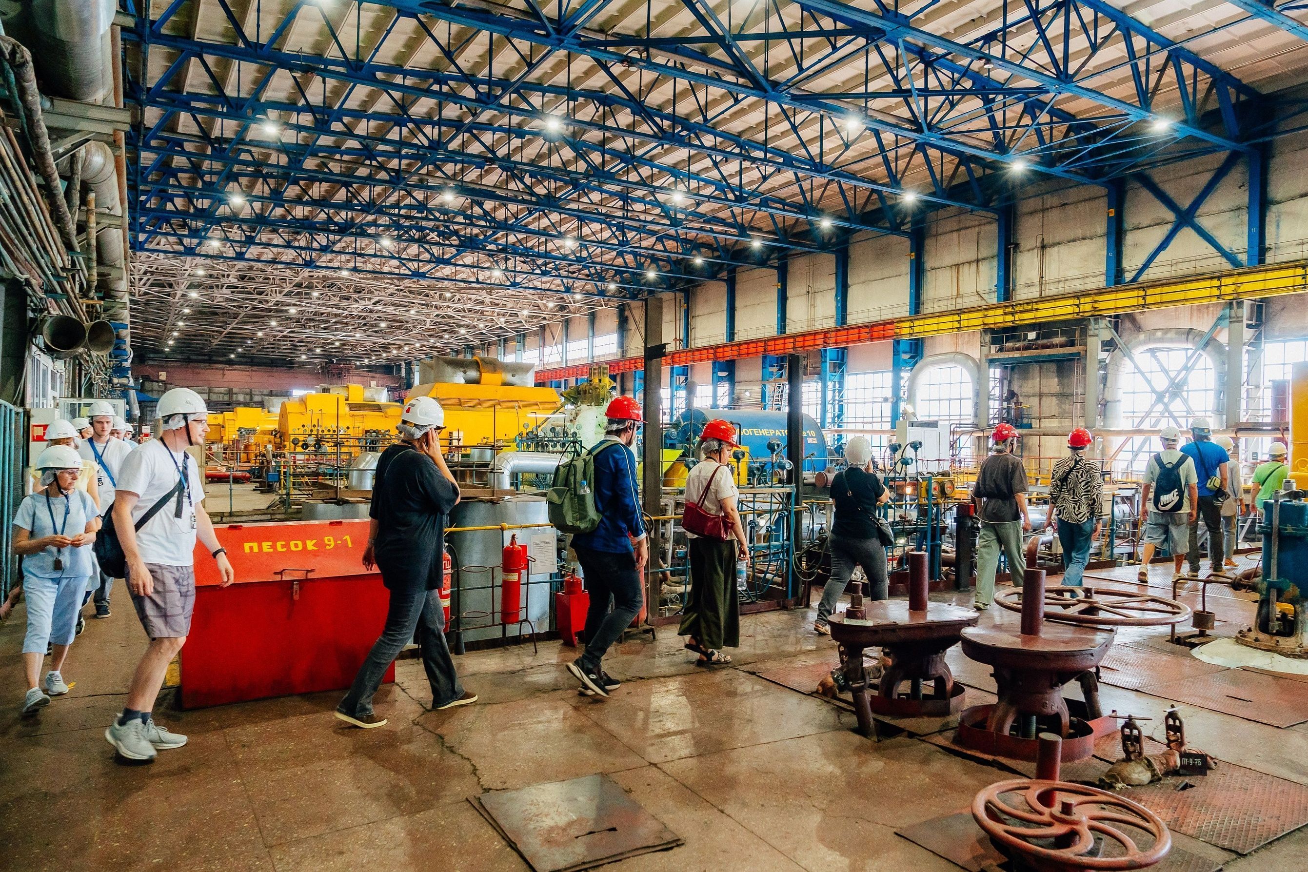 После обязательного инструктажа по технике безопасности гости смогли побывать в котельном, турбинном цехах, на центральном тепловом щите управления и в сердце ГРЭС — на главном щите управления.