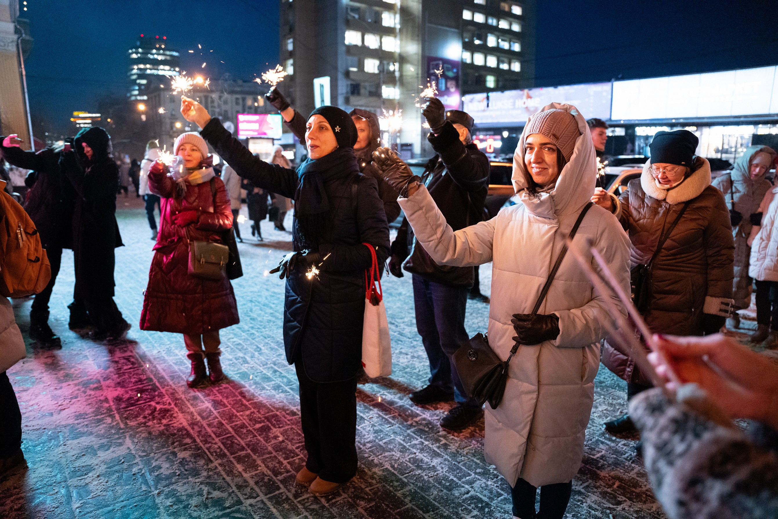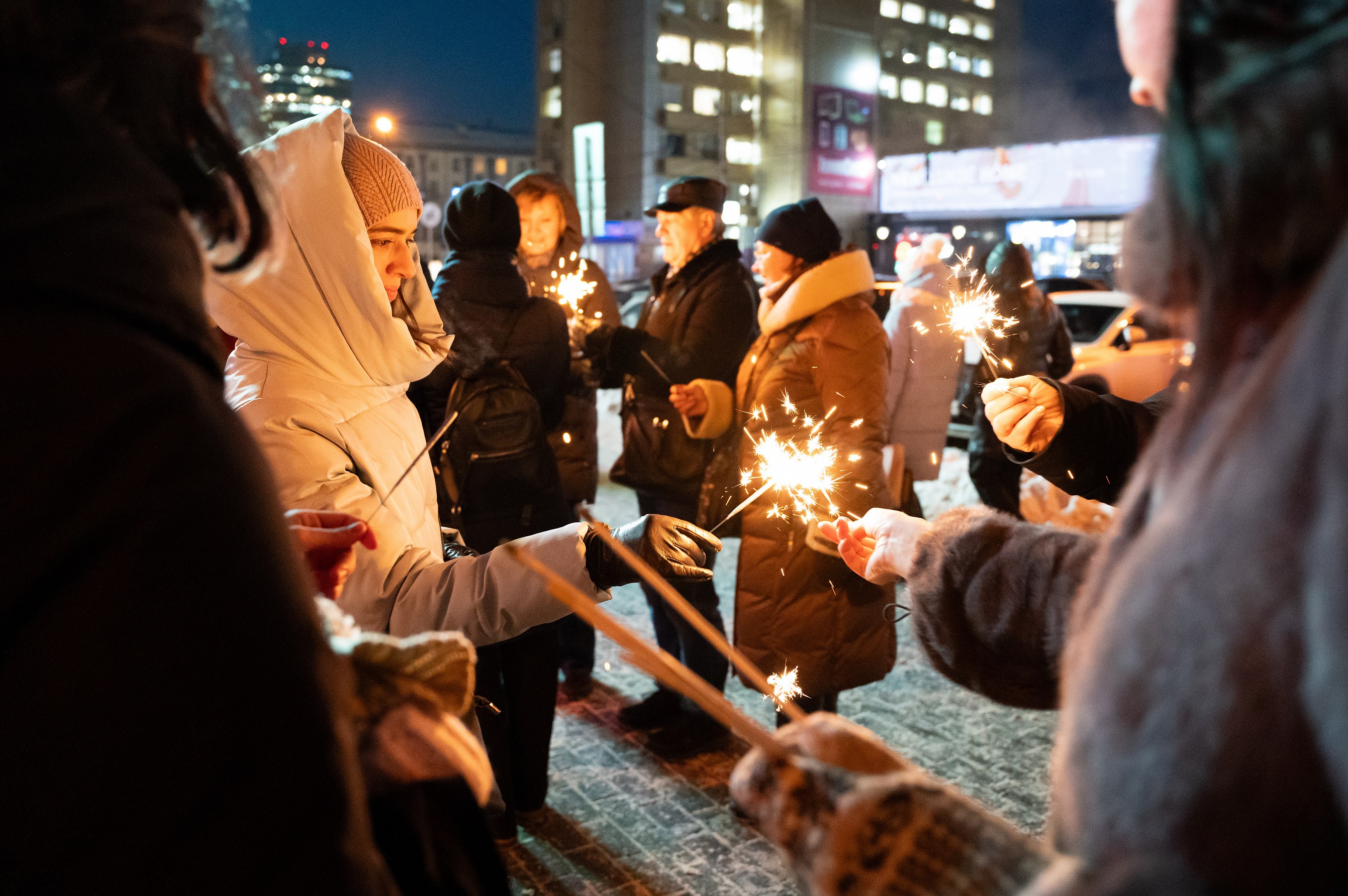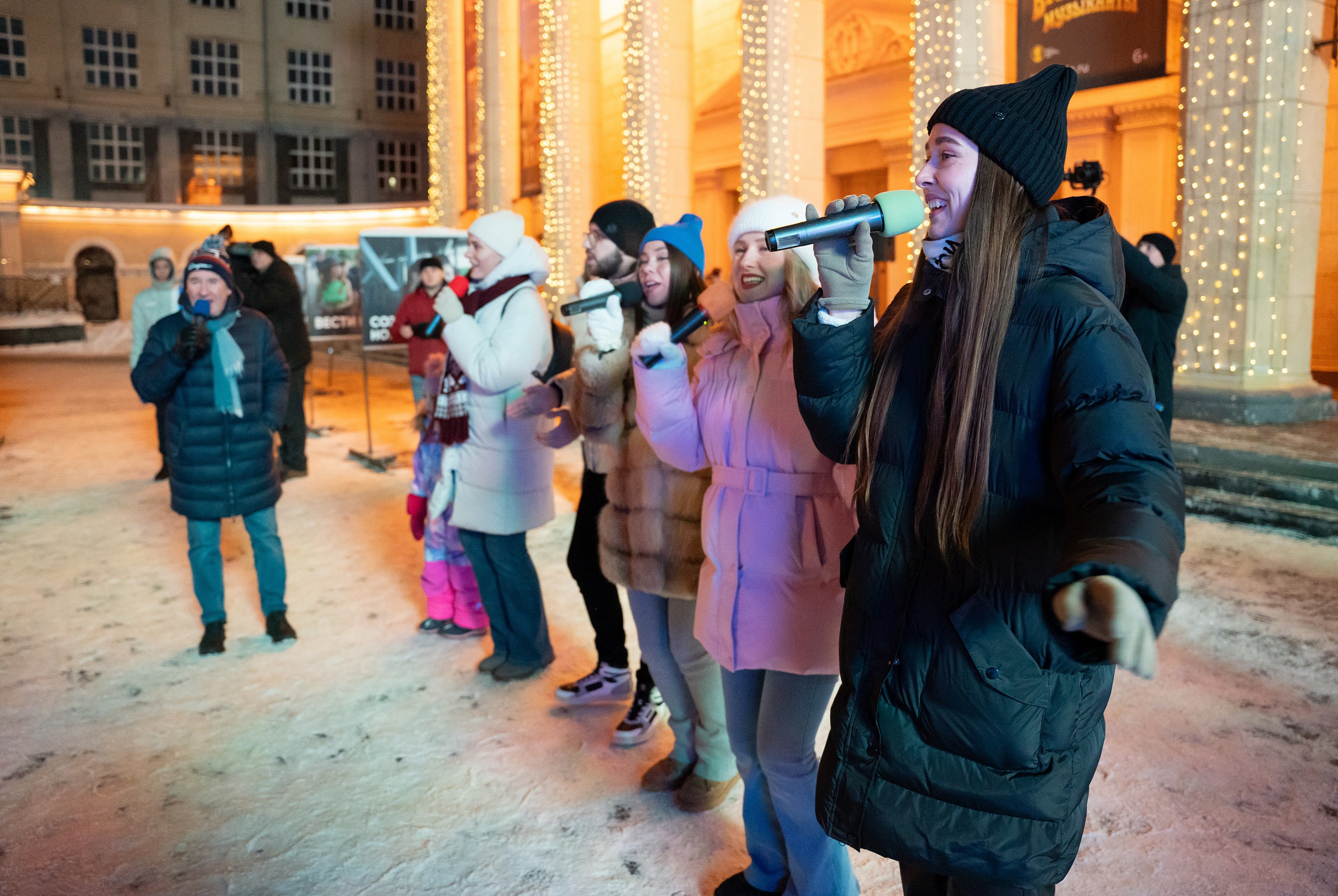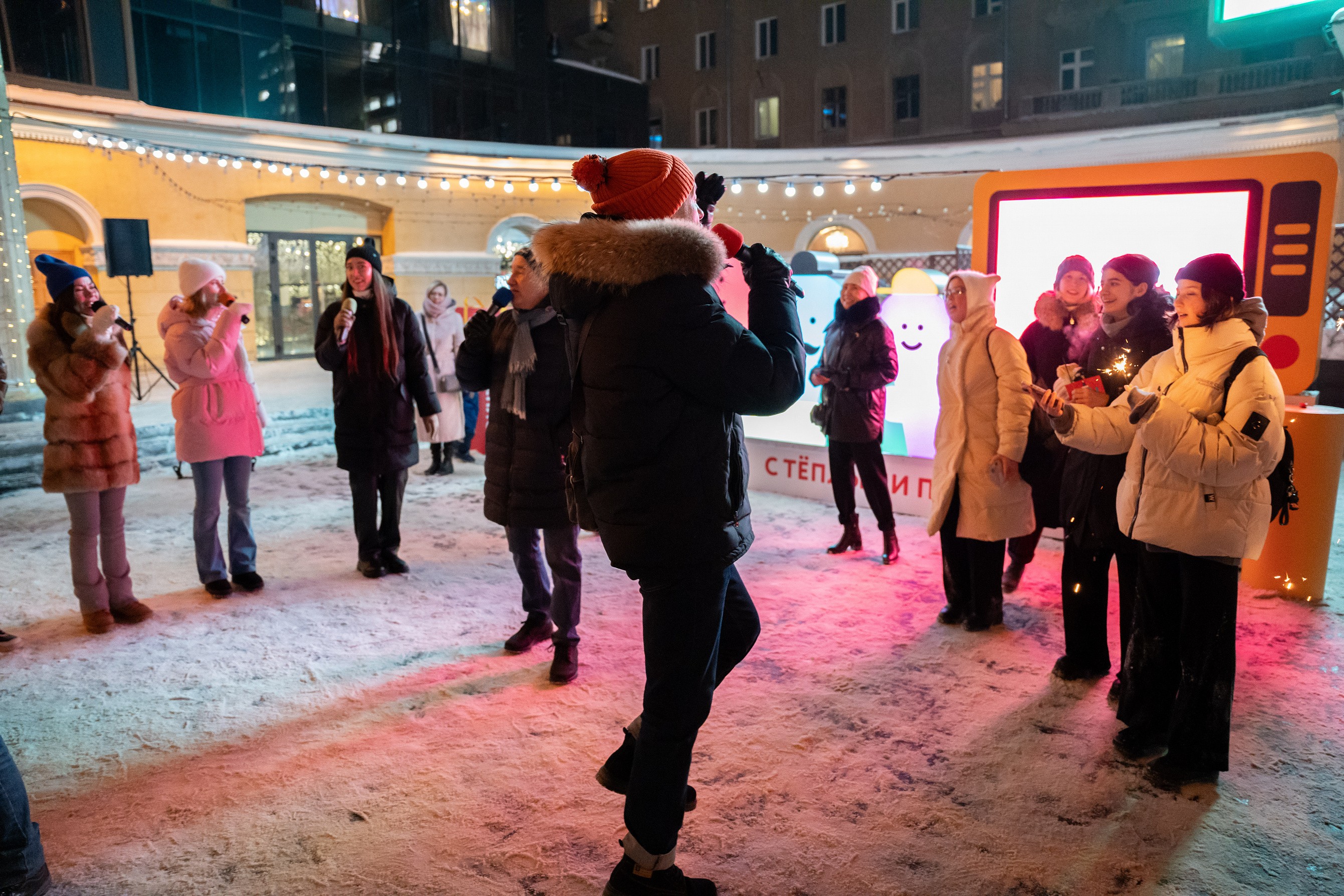 Открыли локацию караоке-флешмобом. Вместе с хоровым ансамблем «Маркелловы голоса» и маэстро Игорем Тюваевым новосибирцы исполнили популярные новогодние песни: «Снежинка», «Кабы не было зимы», «Синий иней», «Звенит январская вьюга».