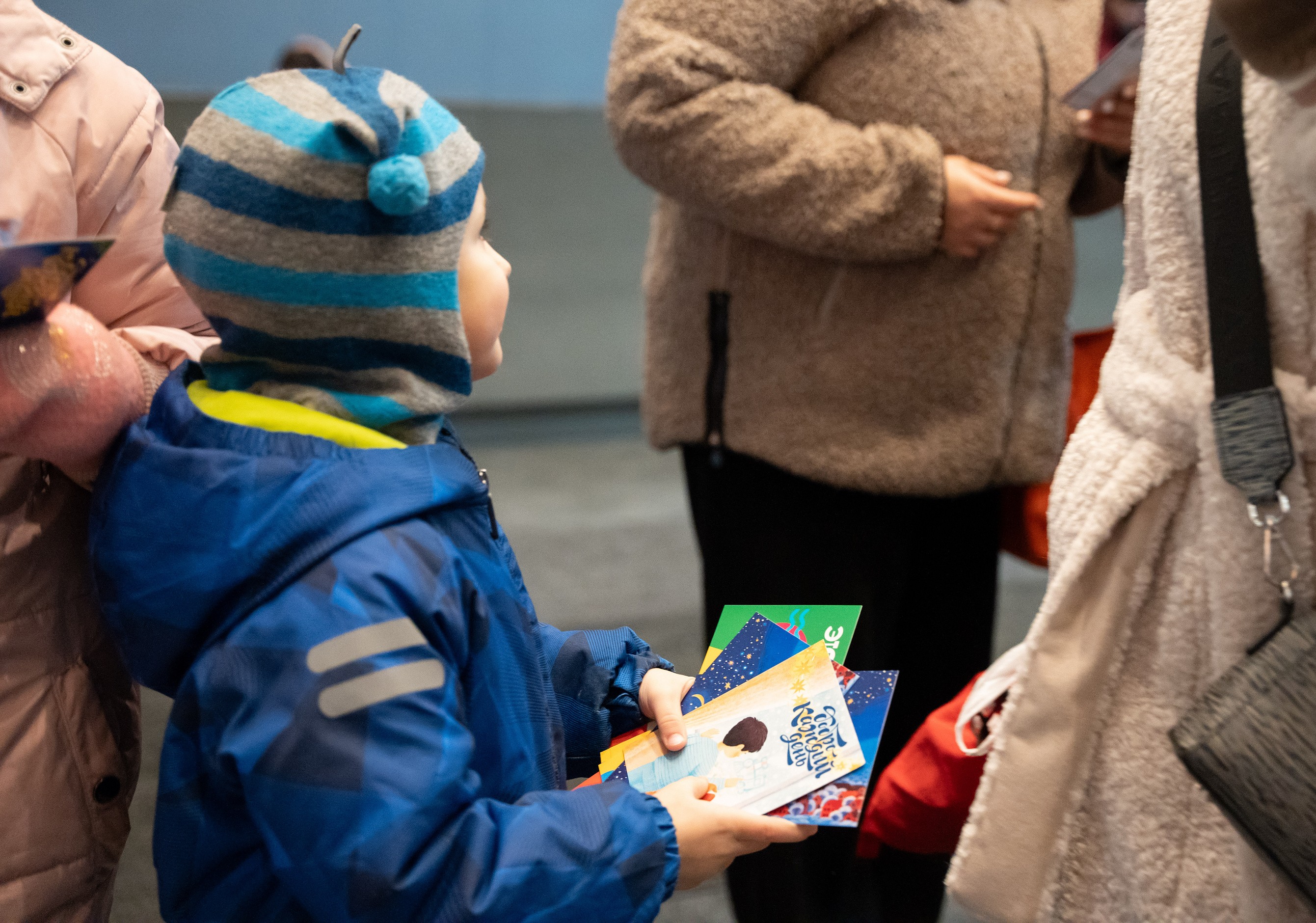 В специальных кармашках разместили новогодние открытки. Их можно просто взять на память или даже отправить по почте своим родным и друзьям. Для этого обратитесь к администраторам кинотеатра «Победа» и получите марку. А свое послание просто опустите в почтовый ящик там же.