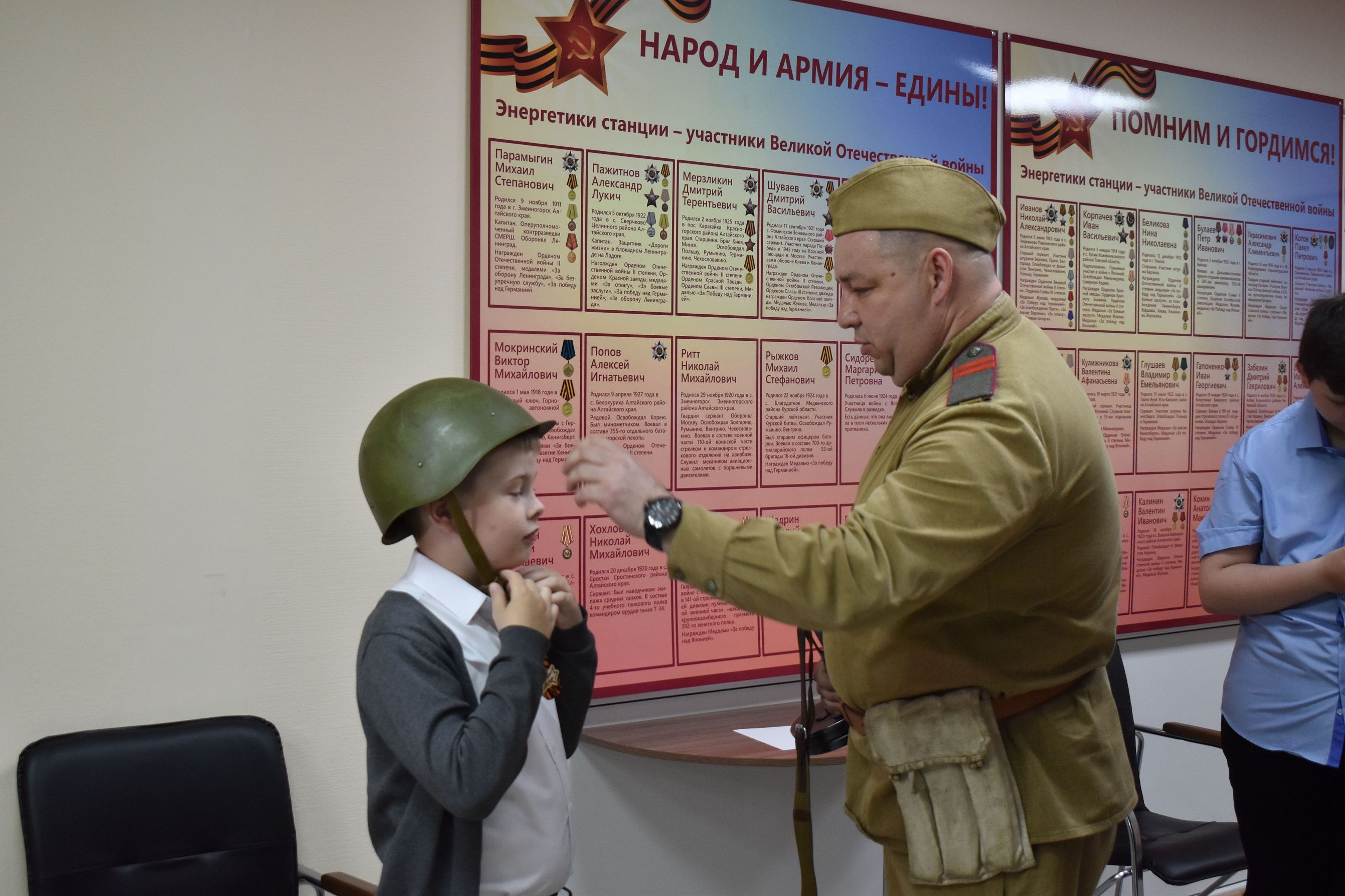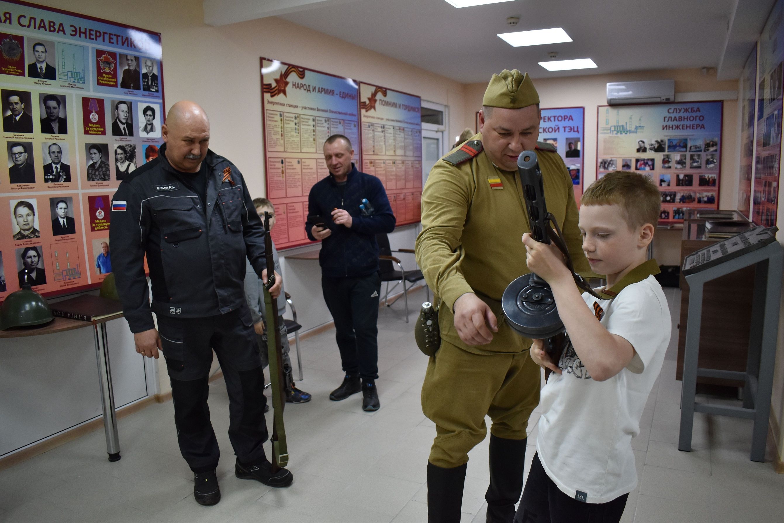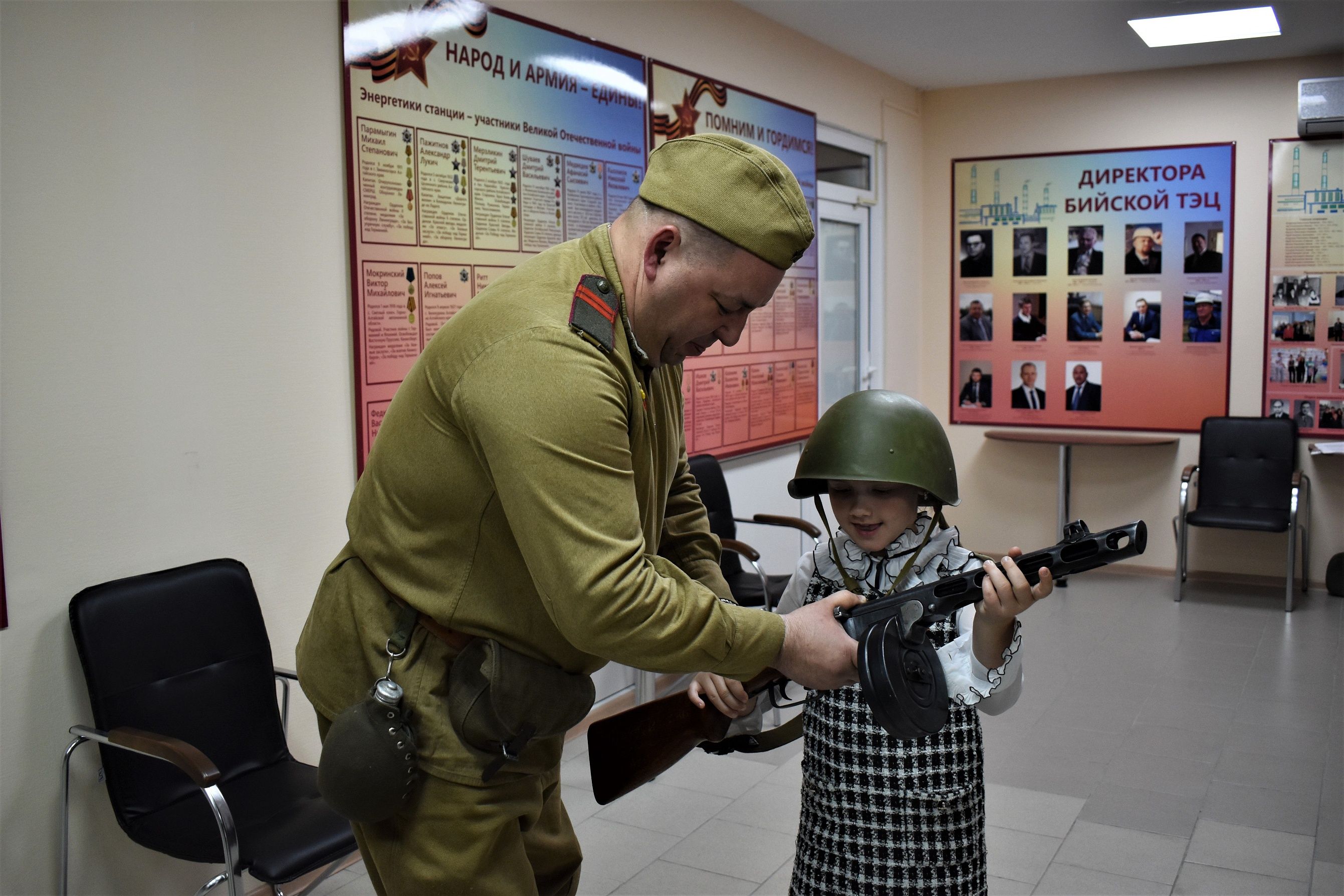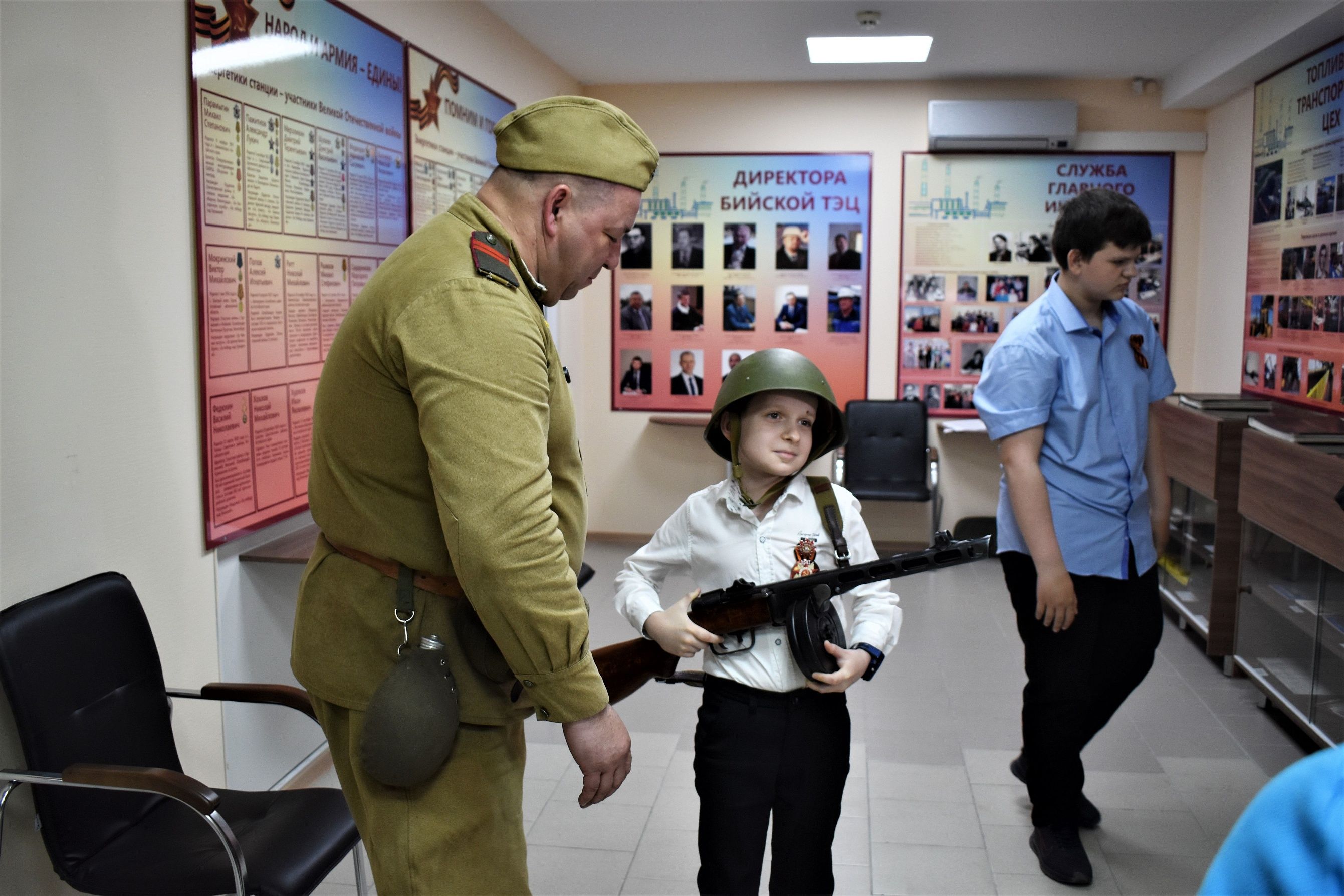 Во время предпраздничного визита на станцию ребята вместе со своими родителями изучили экспозицию музея и внимательно прослушали рассказ директора Бийской ТЭЦ Романа Бугайца о том, как в военное время, во втором по величине городе Алтайского края, развивалась промышленность.