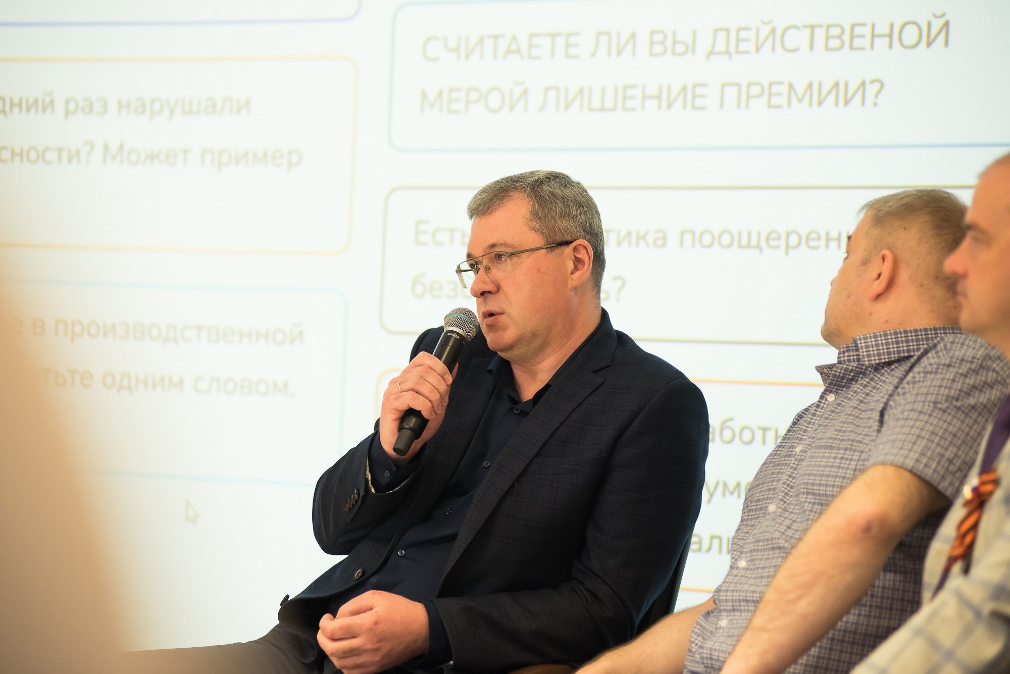 В списке вопросов были, например, такие: как вовлечь работников в вопросы безопасности, меры воздействия на подрядчиков, почему СИЗы для работников и руководителей отличаются, кто и как контролирует безопасность на производстве, когда вы последний раз нарушали правила безопасности?
