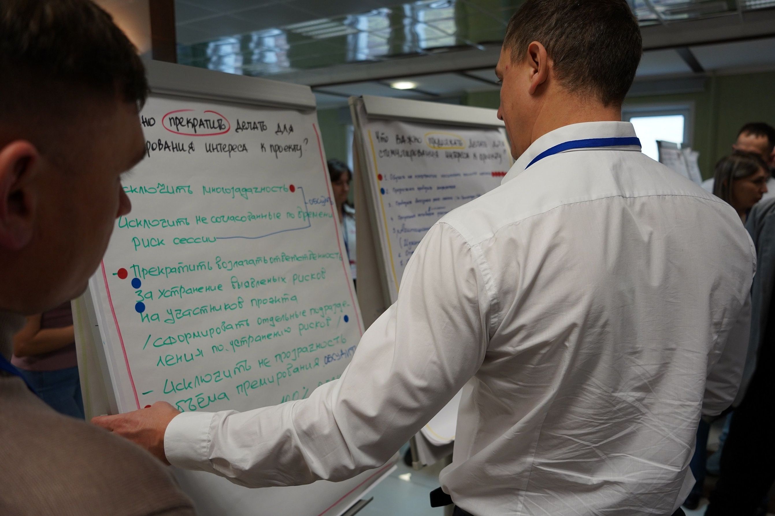 Под руководством опытных бизнес-тренеров участники сессии генерировали решения по увеличению числа вовлечённых в проект сотрудников.