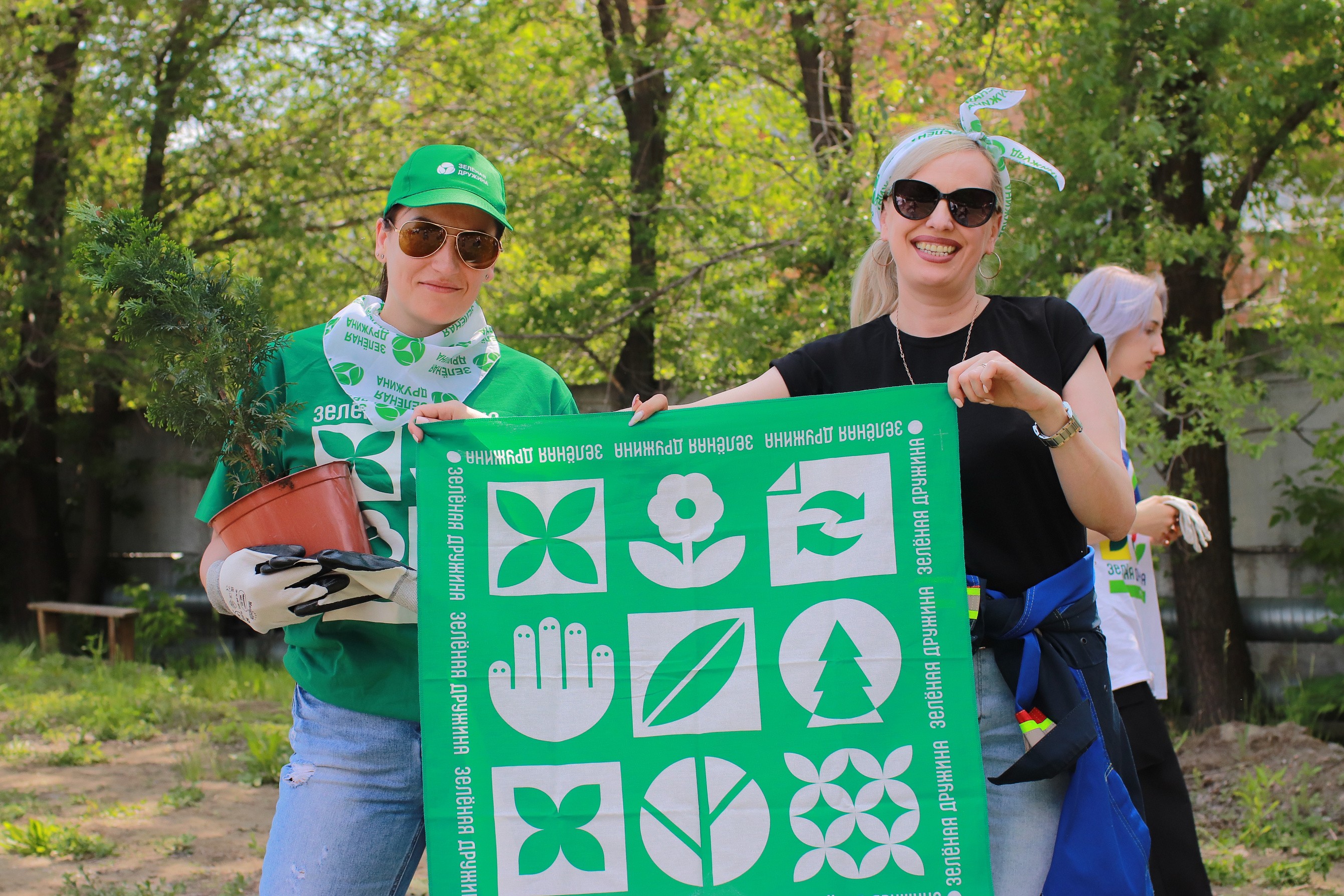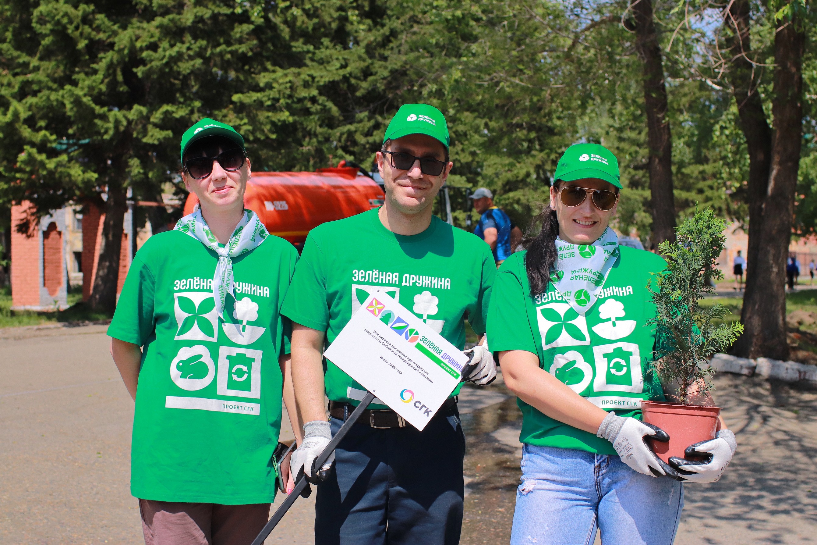Кстати, в числе тех, кто активно в этот жаркий июньский день работал лопатой, были ветераны бийского движения стройотрядов Евдокия Шабалина и Татьяна Иванова. Им от «Зеленой дружины» СГК — персональная благодарность, поскольку девушки (иначе и не назовешь!) помогали молодежи советом, как правильно подготовить лунку под посадку, как поливать и закреплять саженцы при посадке в землю.