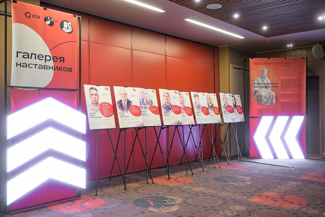 Дополняла атмосферу галерея портретов наставников, подготовленная специально к конференции: участники находили свой смогли забрать портрет с собой, как личный знак признания и память о первом праздновании Дня наставника в СГК.