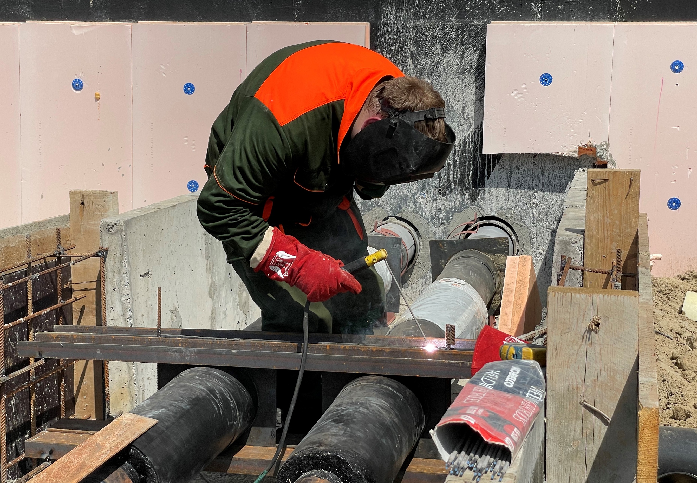 Для подключения новостройки к теплу подрядная организация прокладывает тепловую сеть протяженностью 164 метра в однотрубном исчислении диаметром 125 мм. На конец июня работы по прокладке трубопровода были выполнены на 85%. Завершить строительство новых коммуникаций специалисты планируют в июле 2024 года.
