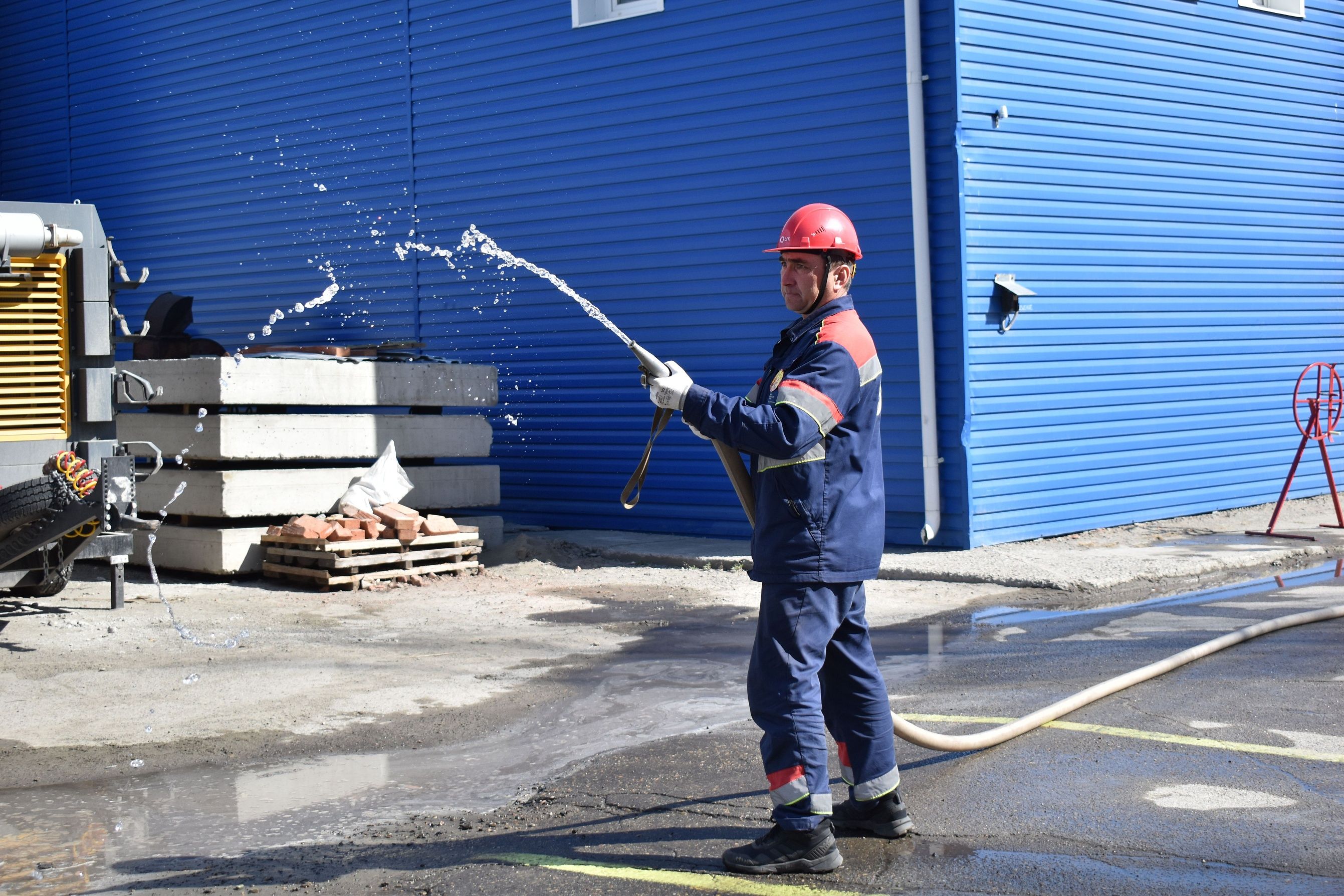 Теплоэнергетики «по секундомеру» разворачивали пожарный рукав для устранения условного возгорания, выносили пострадавшего из зоны потенциальной опасности, тушили открытый огонь с помощью асбестового полотна и порошкового огнетушителя.