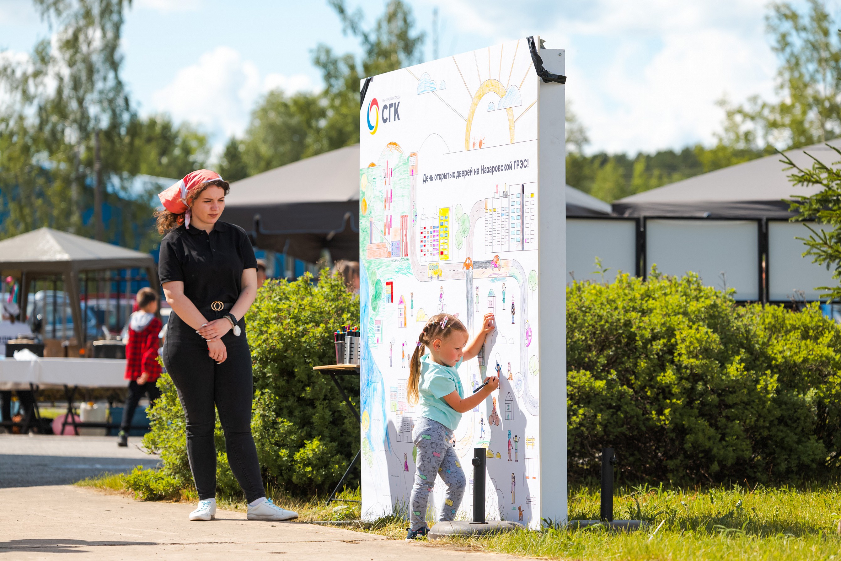 А на зеленой поляне возле ГРЭС детей и взрослых ждали интересные интерактивные площадки. Музей энергетики Красноярского края организовал локацию, где рассказывал о законах физики при получении энергии. Их фокус с огнем на ладошке пользовался большой популярностью.
