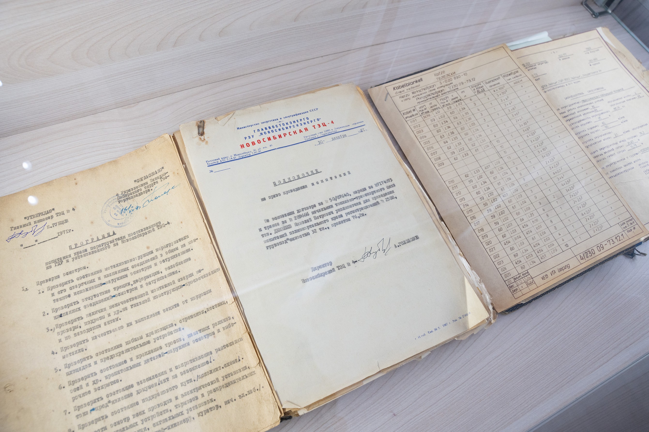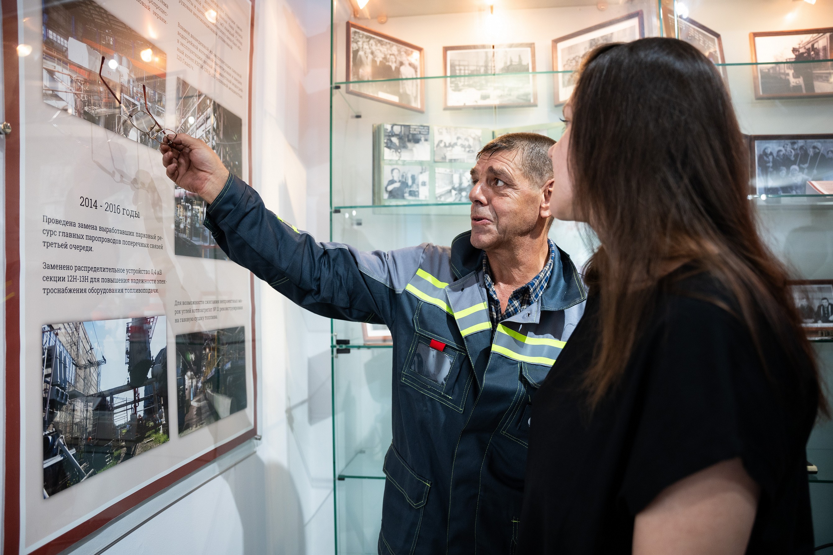 Музей разместился в большом и светлом зале инженерного корпуса. По периметру расположены стенды, на которых можно проследить все историю станции, а также стеллажи с архивными документами и фотографиями тех, кто внес свой вклад в становление и развитие ТЭЦ. Например, можно ознакомиться с приказом о начале строительства станции. Копию документа передал музею руководитель Новосибирского завода химконцентратов, поскольку первоначально станция была в составе этого предприятия и именовалась «цех №10».