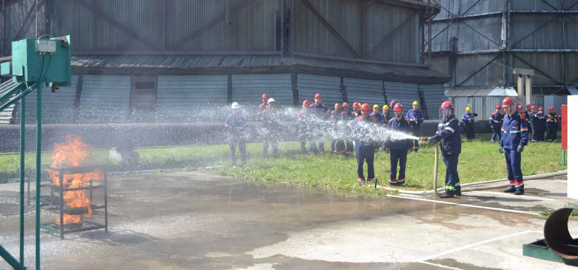 Ещё одним подэтапом стало тушение условного возгорания распределительного устройства 0,4 кВ и поражение мишени струёй воды из рукава.