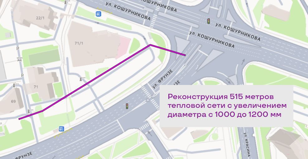 Отрезок крупной теплосети диаметром 1000 мм вблизи ул. Кошурникова планируется заменить — с увеличением пропускной способности трубопроводов за счет расширения диаметра.