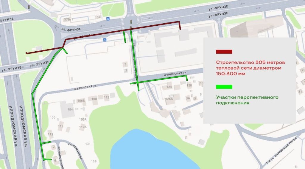 СГК прорабатывает заявку застройщика на строительство теплосетей для комплексного развития территории вблизи улиц Ипподромская, Фрунзе и Журинский спуск. Проект в Центральном и Дзержинском районах рассчитан до конца 2032 года.