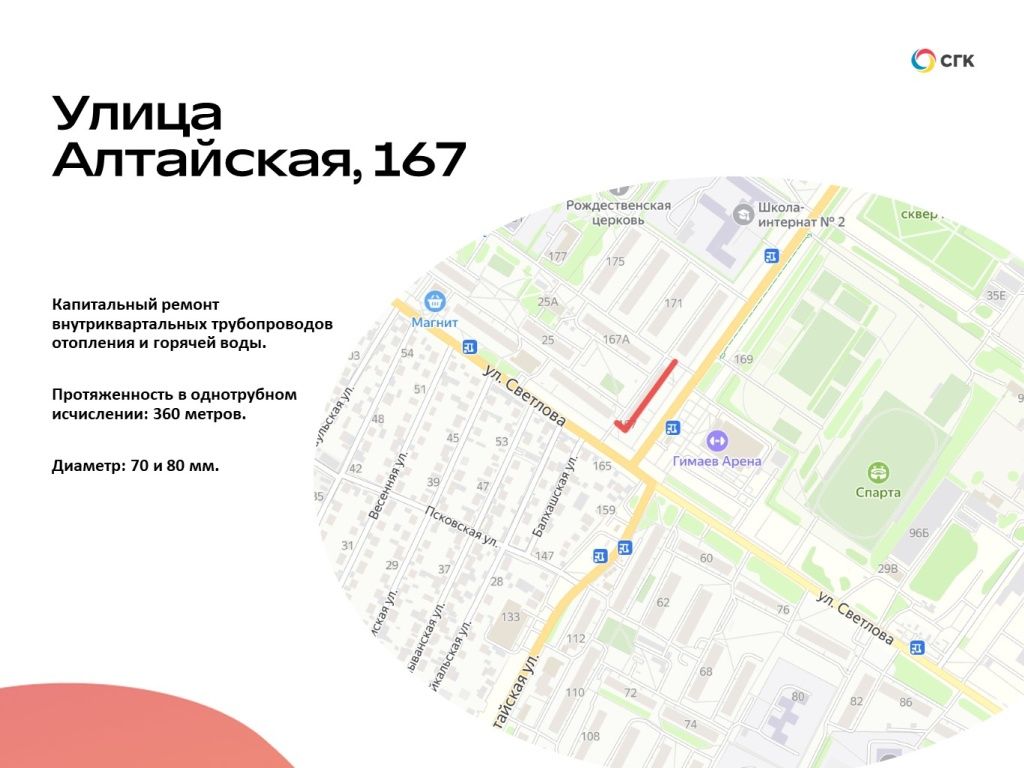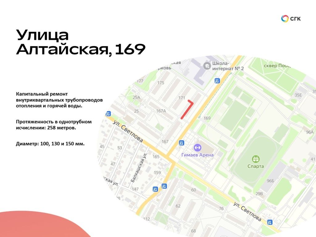 Сразу два объекта капитально отремонтируют в этом году на улице Алтайской в районе домов №167 и №169. Энергетики запланировали там замену 360 и 258 метров трубопроводов соответственно. На обоих участках будут переложены и трубы отопления, и трубы горячего водоснабжения диаметром от 70 до 150 мм. Повышенная повреждаемость трубопроводов стала причиной включения участков в ремонтную кампанию-2025.