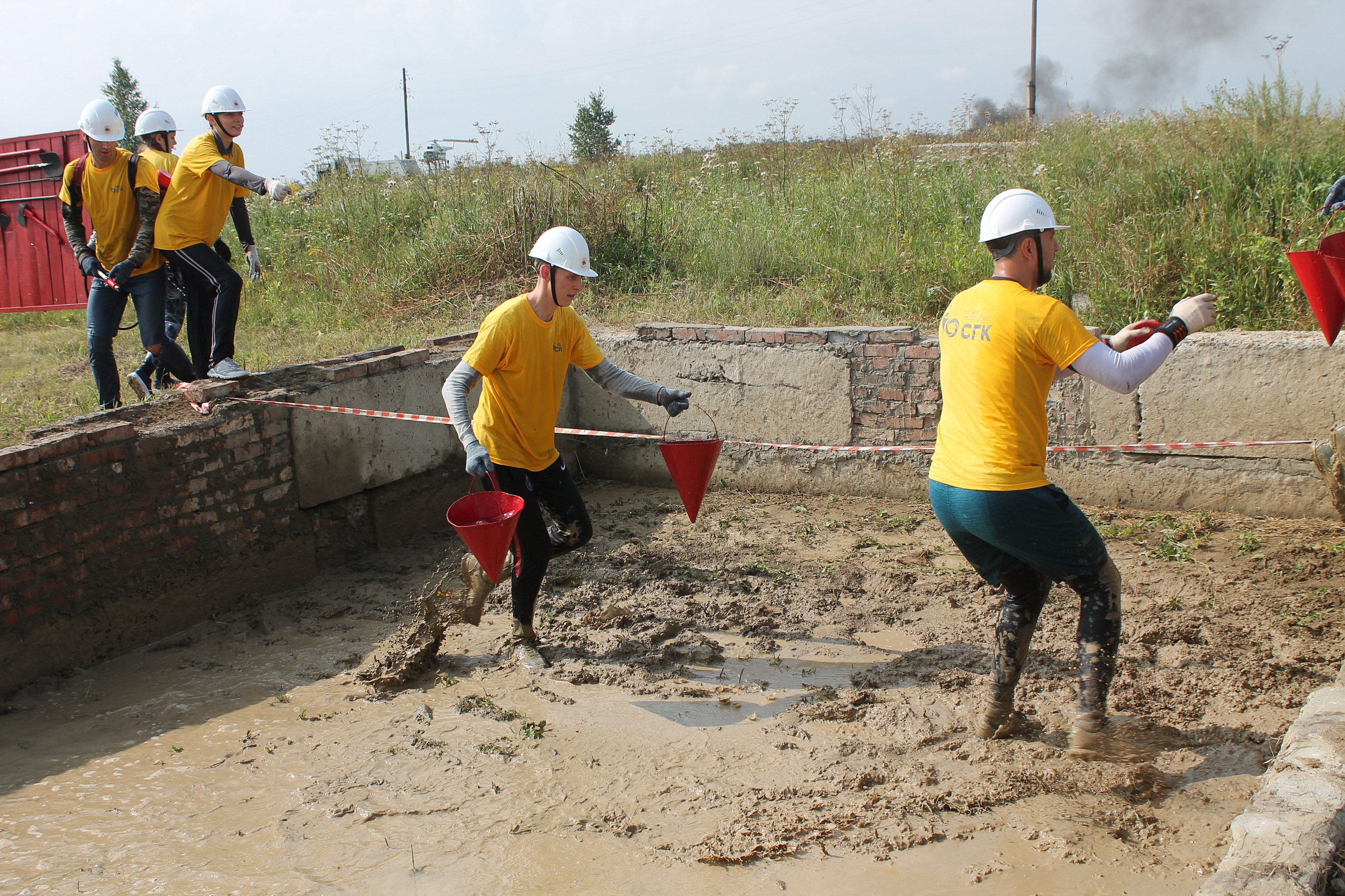 А дальше степень сложности повышается. Препятствия превращаются в модели реальных критических ситуаций.Так, командная работа помогла вытащить затопленный автомобиль и спасти человека.