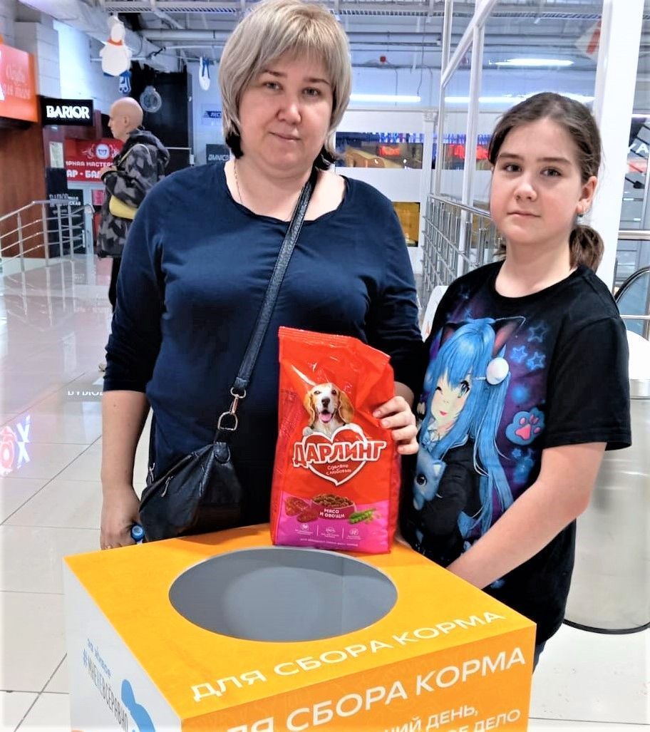 — Я чистое постельное белье принесла, правда, б/у, пригодится? — волнуясь, спрашивает пожилая женщина организаторов мероприятия около короба для сбора помощи. Те успокаивают ее, что да, конечно, пригодится для возрастных и больных животных приюта, которые передвигаются с трудом. Тут же девушка спрашивает, какой лучше корм принести и через некоторое время возвращается с двумя полными пакетами сухих кормов для кошек и собак.