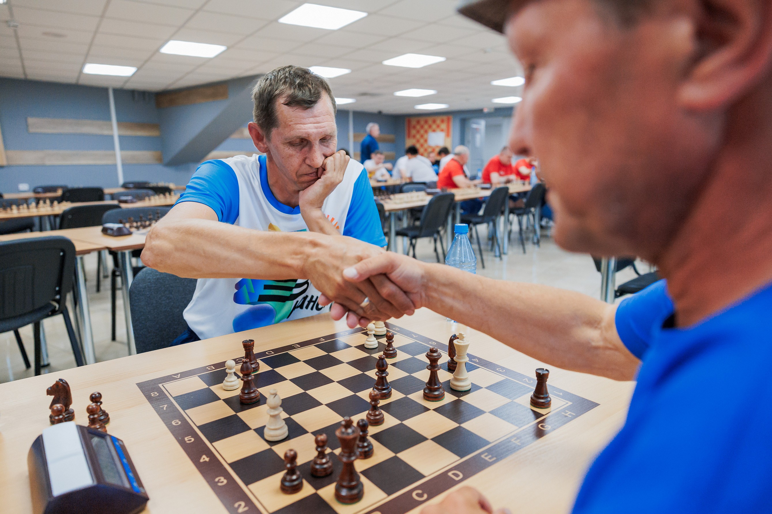Шахматисты и теннисисты соревновались в помещениях главного городского стадиона. Судьи отметили, что по концентрации эмоций шахматы могут дать фору даже таким зрелищным видам спорта, как бокс. Несколько победных очков в турнире по шахматам принес своей команде главный инженер Назаровской ГРЭС Сергей Рябцев. Сергей переехал в Назарово из Кемерова, и раньше выступал в корпоративных соревнованиях в Кузбасском филиале СГК.