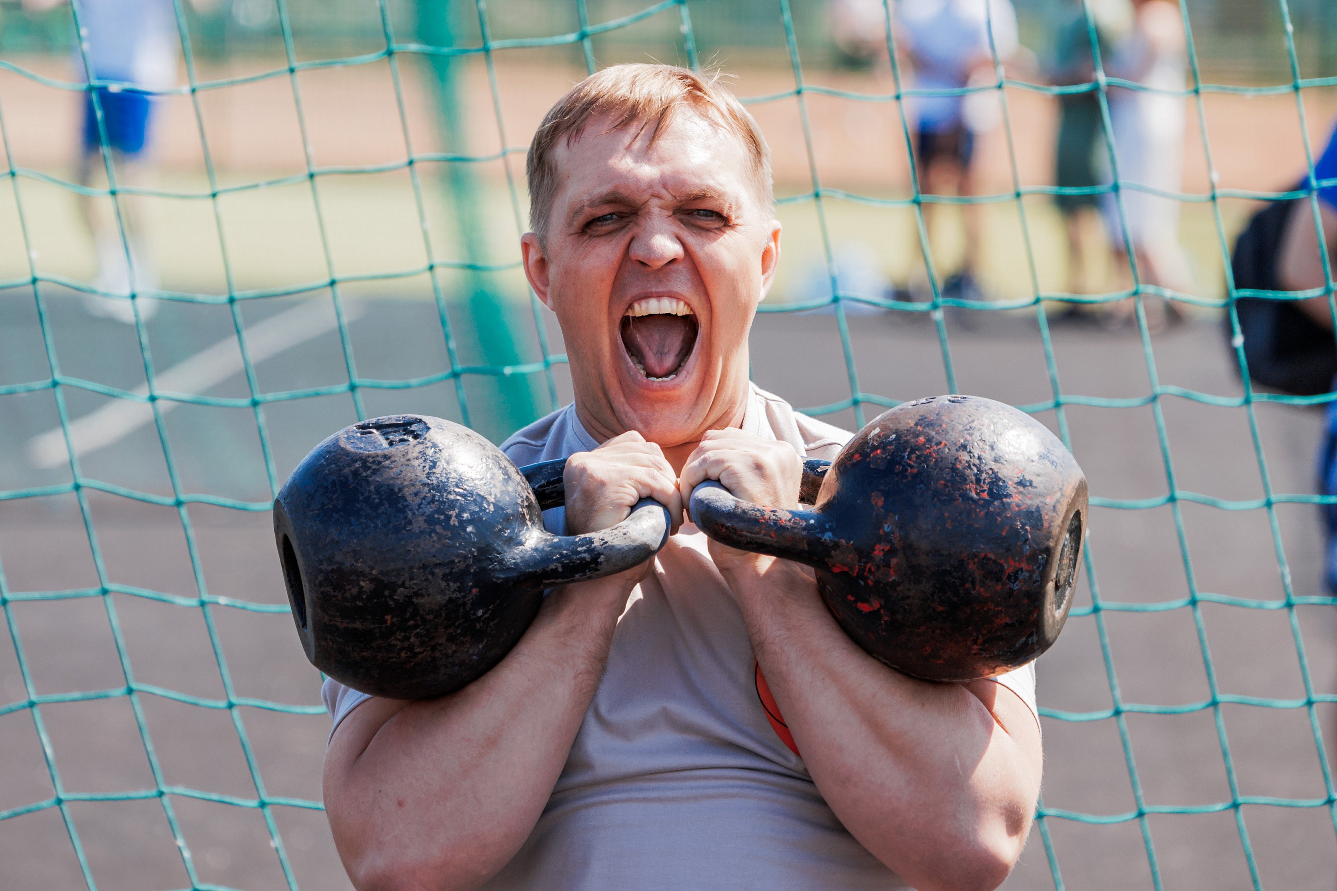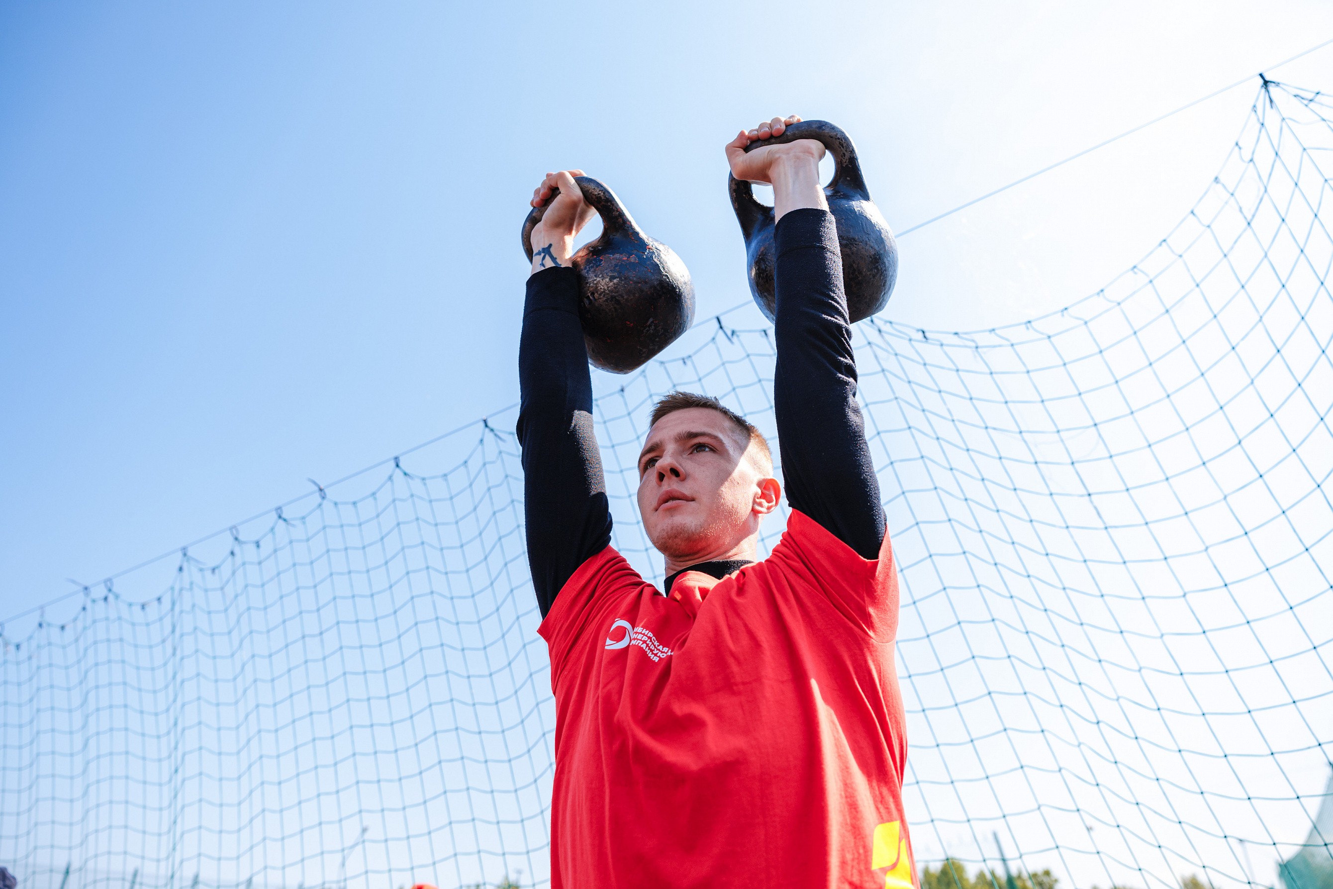 Рядом с площадкой эстафеты соревновались в гиревом спорте силачи-тяжеловесы. Лидерами в этой категории стали земляки Олеси из города Зеленогорска — Егор Новиков и Дмитрий Попов. За две минуты они подняли два шестнадцатикилограммовых снаряда 94 раза.